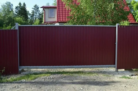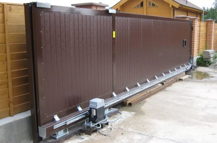 Откатные ворота из профнастила с встроенной калиткой и автоматикой
